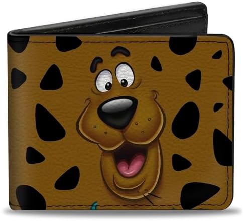 Buckle-Down Men's PU Bifold Wallet-Scooby DOO Close-UP Expression/Spots Brown/Black/White, Multicolor, 4.0" x 3.5"