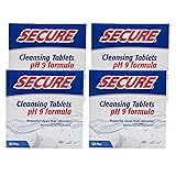 - Secure Cleansing Tablets are individually wrapped and designed to fight odors, plaque, and lift stains from a wide range of dental devices, from dentures to Invisalign and everything in between. Featuring an alkaline pH of 9, the tablets offer thorough disinfection and are suitable for users of various dental adhesives. A ten-minute soak in warm water provides a deep and gentle clean. Pairs well with Secure Denture Adhesives, the powerful formula fights stubborn stains, plaque, and bad odors, leaving your dentures looking and smelling like new.