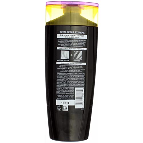 - -L'Oreal Paris Elvive Total Repair Extreme Renewing Shampoo Wheat Protein + Ceramide Strengthens & Renews 12.60 Fl Oz. -Extremely Damaged Hair. -(Pack of 5). -Package may vary.