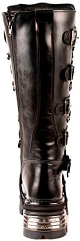 New Rock Newrock 272 Metallic Black Goth Knee High Zip Boot Leather Buckle Boots