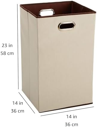 Amazon Basics Rectangular Foldable Laundry Basket Hamper, Beige/Brown