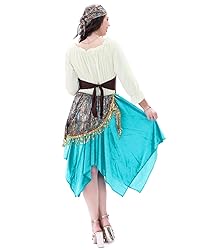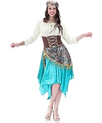 Polyester Includes: Dress, Headscarf Size: Adult Medium (8-10) 100% Polyester A great Fortune Teller dress up outfit or Halloween costume Boots and Jewelry not included