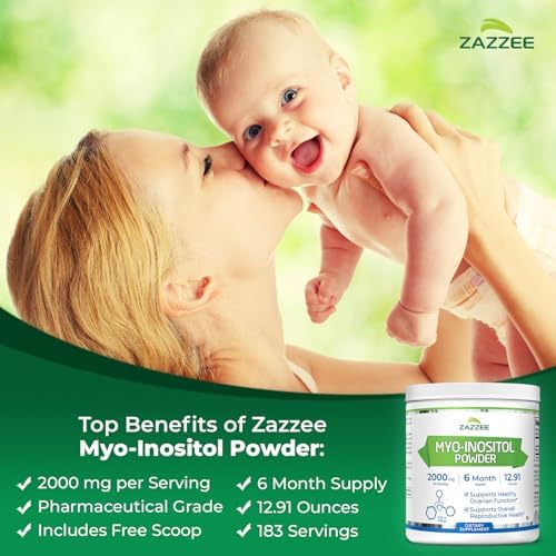 Polvo de Mico-Inositol Zazzee, Suministro de 6 Meses, 183 Porciones, 2000 mg por Porción, Cuchara Gratuita para Dosificación Exacta, 12.91 Onzas, 100% Puro, Apoyo Reproductivo y de Fertilidad Natural, Vegano, No OGM