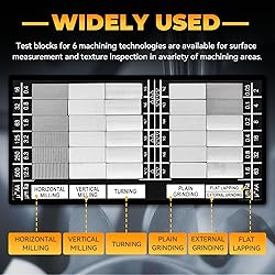 1. Highly Accurate Measurement: Surface roughness comparators come standard with 30 samples of different roughness grades (Ra0.05-12.5 mm), providing you with a wide range of choices to easily differentiate and compare different surface qualities and ensure that your products meet the highest standards. 2. Multiple Processing Methods: This surface roughness standards set can measure the roughness of six processing methods (Horizontal Milling, Vertical Milling, Turning, Plane Grinding, Flat Lapping, and External Grinding). Multiple functions can be realized, such as measuring different types of surfaces and detecting various textures. 3.Stable and Reliable: The surface finish comparator set is made of No.45 super carbon steel, which is stable and durable, not easy to deform, and has an oil film to protect it from rust, so you can rest assured of long-term repeated use to ensure accuracy and reliability. 4. Easy to Use: The standard kit is clearly labeled with the model number, and the specimen blocks correspond to each other in an orderly manner, so it is very simple to compare, check and identify. A 5X handheld magnifying glass is included to aid in identification. Whether you are a student or an experienced engineer, you can easily operate and compare to meet your needs. 5. Wide Application: Surface roughness standards set is not only suitable for surface roughness measurement, quality control and instrument calibration, but also an intuitive teaching aid for mechanical majors in higher education institutions, which can meet the needs of different industries and fields of various applications. 6. Warm Tips: When using the roughness test block, try to be in the same conditions as the inspected parts, including surface color and lighting conditions. No direct hand contact with the comparison sample block, strict anti-rust treatment to prevent rust and corrosion, and avoid touching scratches.