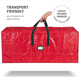 TREE PROTECTION - Our Xmas tree bags provide reliable protection, shielding your Christmas trees from damages, dust, and moisture, ensuring they remain in pristine condition and ready to be showcased. DURABLE - Crafted from heavy-duty and waterproof polyethylene plastic, our Zober artificial tree storage bags are designed to withstand the test of time, offering reliable durability for many seasons to come. EASY TO CARRY - Two stitch-reinforced handles make it effortless to transport your Christmas tree storage bag between storage and the living room, eliminating any hassle. CARD SLOT - Our Christmas tree storage bag has an attached card slot, which enables you to label and identify the contents of the storage container for your Christmas tree. HASSLE-FREE ACCESS - The dual zipper opens the Christmas storage bag wide, facilitating uncomplicated placement and removal of your tree. There is no assembly required; simply unfold the bag and insert your tree for efficient tree bag storage.
