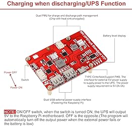 - MakerFocus Raspberry Pi 4 Battery Pack UPS, RPI Pack Standard(Raspberry Pi Battery, USB Battery Pack Raspberry Pi,) Latest Version V3P Expansion Board Power Supply Type-C for Raspberry 5 4B 3B+ 3B 2B+ Remarks: UPSPack V3P is the latest model of a new generation of Raspberry Pi UPS uninterruptible power supply expansion board released in September 2020. According to previous iterations of V1 and V2 versions, V3P version is currently the most stable UPS power supply solution for Raspberry Pi. Description: Please check the pictures carefully to understand the product differences between UPS V3P version and V2P version. You will like this latest version of UPS charging board. It has a smart switch function, and with a type-c interface, allowing you to easily connect with the Raspberry Pi 4B. Package Including: 1 * Raspberry Pi UPS Pack Latest Version V3P 1 * 3.7V 4000mAh Lithium Battery 1 * Package to install screws 1 * 5pin 2.54mm head