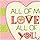 - This sweet counted cross stitch pattern reads ''All of me LOVES all of you'' in a heart on a striped background.