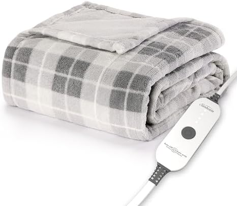 Sunbeam Electric Royal Luxe Microplush Heated Throw snuggles you in warmth on chilly nights. Wrap yourself in the rich, cozy microplush fabric that keeps you toasty warm as you unwind. The stylish gray rodeen plaid pattern adds a vibrant touch to any decor, making this 50"" x 60"" electric blanket a great addition to your couch, bed, or favourite chair. This throw features a super easy-to-use push-button controller with 4 adjustable heat settings, so you can find your perfect temperature, and a 4-hour auto shut-off for added peace of mind. The heated wires are made with premium components developed with a wire technology that senses and adjusts for continuous heat and safe operation. When ready to clean, simply detach the controller from the throw and place into the washing machine and dryer for easy care, stays soft wash after wash. Sunbeam is an American brand trusted for over 125 years in electric home appliances. All Sunbeam electric bedding products are ETL certified.