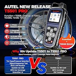 💯【Conta.ct us for Support Directly】🚩If you met any issues about: Received a registered device/ Language Changing/ Function not Support, please conta.ct us via 📞autelchoice @ outlook. com🛣️ assp, we will provide perfect solution for you.🚦 Note: ➊For tech support or explore additional accessory, please cont.act our team. ➋You need to regist-er an Autel accou-nt before using the Autel TS501 PRO; otherwise, TS501 PRO can only be used ten times. ➌Function are vehicle-specific---Send the vehicle VIN>make>year>model>wanted functions to 📞autelchoice @ outlook. com📞 to verify compatibility. 🏆【2026 New Release TS501 PRO: Upgraded From TS501】To Max Your TPMS diagnostic capability, Autel has upgraded old ver. of TS501 to newest TS501 PRO with more functions & wider coverage. Inherited all functions of the old ver. TS501/ TS408S/ TS408/ TS401, using the same hardware & software as TS508WF but 70$ cheaper. Compared with TS408S, Autel endows TS501 PRO more new features at same cost: Tire Type/Pressure Selection; Frequency Test; RKE & RF Monitor; Update via USB 🏆【Superior to TS501/ S408S/ TS408/ TS401】Upgraded of TS501/ TS408/ TS401, Autel TS501 PRO automotive diagnostics tool can perform TPMS diagnose and comprehensive TPMS health check in one step, and read/clear TPMS DTCs as well as on-screen DTC description; Read Sensor ID by OBD; Relearn by OBD function. All of these funtions are not supported by TS408/ TS401, and let you lose important TPMS health diagnosis & check!!! 📢🚦Functions vary by vehicles's make, model and year, please send us car VIN to check compatibility before order! 🏆【Tire Type/Pressure Selection Added】Same functions as Autel TS508 (249 B.uck), yet has lower p*rice. TS501 PRO tpms tool has added most desirable features with unbeatable p*rice, which avaliable on TS508:Tire Type/Pressure Selection: when the TPMS MIL is still on after faults are cleared, you need this function to set right value; Frequency Test for checking the frequency of the 315 MHz and 433 MHz; Update by USB, abandoning the ancient SD card update ways. 🏆【2 Ways to Program Autel MX-Sensors】📢Note: It is not compatible with all sensors, please me-ssage via Am-azon with sensor type to check compabitility before place an order!!.Autel TS501 PRO tpms programming tool enables all car enthusiasts to program sensor data to Autel MX-Sensors with ease, saving you the m.oney and trip to a dealership. With TS501 PRO, you can program AUTEL MX-Sensor (315/433MHz) with two professional programming options: Copy by OBD(Not available with TS408); Auto Create 1-16 Sensors to replace the faulty sensor with low battery life or one that is not functioning well. 🚩❌Note: Autel TS501 PRO can ONLY program Autel MX-sensors. It can NOT program other brand sensors. 🏆【Activate Sensors & TPMS Diagnose】Upgraded version of TS501/ TS408/ TS401. Designed to activate 99% OEM/Universal TPMS sensors, can diagnose newest models up to 2020 with frequent updates. TS501 PRO provides users with direct access to the vehicle’s ECU through OBD II connection, thus allowing users to reprogram sensor IDs and retrieve/clear TPMS DTCs, helping technicians to quickly find out faulty TPMS and turn off MILs. 🏆【Relearn TPMS Sensors】To turn off the TPMS light after replacement, you need to relearn the sensors to the vehicle! Autel TS501 PRO TPMS Relearn Tool provides 3 ways of on-tool relearn precedures to relearn both OE and aftermarket sensors: ➊Stationary Relearn, ➋Automatic Relearn,➌OBD Relearn(TS408/ TS401 not support). 🏆【Multiple Languages & Data Management】TS501 PRO comes with Review Data function, which allows user to view and print out saved data of the latest TPMS diagnostic recordings by the service tool. Support multiple languages, if you want to change languages, please send 📞 autelchoice @ outlook. com 📞 the S/N (12 digits at the back of the product). We will provide you with language authorization. 🏆【 Life-t-ime Update & Tech Support 】Autel TS501 Pro TPMS relearn tool provide life-t-ime software updates and technical support, and 24/7/365 thoughtful support. Customer experience is our top priority. If you have any problems or concerns, please don't hesitate to reach us firstly via 📞 autelchoice @ outlook. com 📞. You will get the available solution within 12 hours.