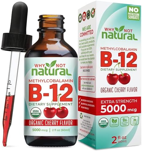 ¿Por qué no vitamina B12 natural orgánica líquida - gotas sublinguales extra fuertes de 60 x 5000 mcg de metilcobalamina, vegana, maximiza la absorción y la energía