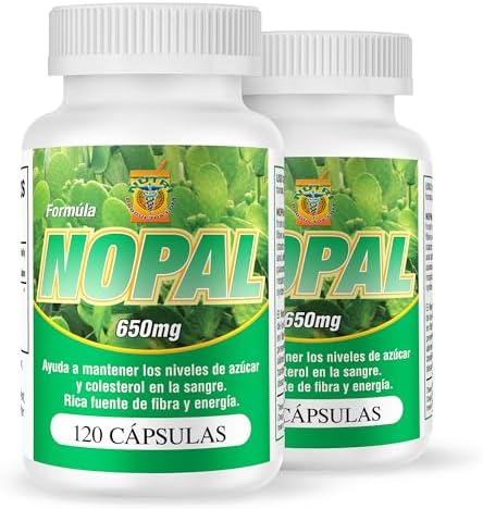Productos Nutrisalud Cápsulas de Nopal. Set de 2 frascos con 120 cápsulas CADA uno. Puro y auténtico. Ayuda a la digestión, reduce el colesterol, limpia el colon.