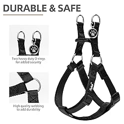 [PUPTECK Brand Size M] - Chest girth 17.5"-24", strap width 3/4". Recommended to small to medium pets, such as French Bulldog, Beagle, Pug, Boston Terrier, Jack Russel Terrier, etc. Sizing does NOT directly correspond to your pet's breed or weight, and do NOT order the usual size directly, please always measure your dog and refer to our brand size chart [No Pull, No Choke] - Both sides of the harness are like a triangle structure, which can wrap around the dog's body perfectly, you will feel good control during use. And the stress is on the dog's chest, not its neck, so this harness allows dogs to breathe freely [Step in Harness] - The harness is very easy to put on/take off. Just let your dog's front leg in, then close the buckle, adjust the strap to fit perfectly, and done! It makes your travel faster and more convenient [Durable & Comfortable Material] - High-quality nylon fabric with high-density webbing to add durability. The webbings have been widened, and the surface is very smooth, so the harness's comfort will be better. Your dog will enjoy the daily walk in this comfortable dog harness [Cute ID Tag for DIY] - Each harness is equipped with a metal ID tag, and the front is a cute paw pattern, while on the back, you can engrave whatever you want, such as the dog's name and so on. It does not corrode as easily as wooden labels and is durable. You can also remove it when washing the harness