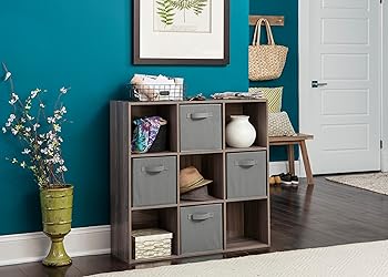 CUBE ORGANIZER: 9-Cube design with nine square, cube shelf openings CUBE STORAGE UNIT: Create storage and display space for any living area in your home for books, garments, décor, picture frames or keepsakes; Ideal for trendy organization with 5 back panels STACKING DESIGN: Hardware included for easy stacking of multiple units (sold separately) ADD FABRIC DRAWERS: Add on compatible 11 in. fabric cube drawers to add in color & style; Cube compartments measure: 11.25 in. H x 11.25 in. W x 11.75 in. D EASY ASSEMBLY: All hardware included for easy assembly; Assembled dimensions: 35.86” W x 11.63” D x 35.86” H
