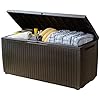 Keter Springwood 80 Gallon Resin Outdoor Storage Box for Patio Furniture Cushions, Pool Toys, and Garden Tools with Handles, Brown