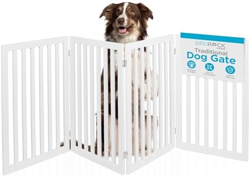 INTERNET'S BEST Dog Gate Indoor Freestanding Pet Barrier, Folding Wood Dog Fence, Extra Wide Doorway Puppy Gate, Indoor Animal Privacy Panel, Wooden Cat Fence - 4 Panel - 36", White