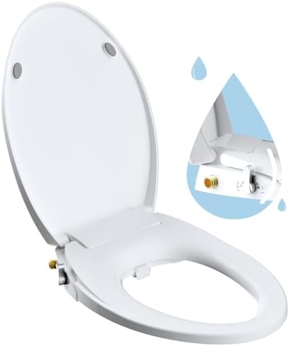Hibbent Elongated Bidet Toilet Seat with Slow Close, Non-Electric Bidet Attachment for Toilet Seat with Dual Nozzle, Bidet Sprayer with Adjustable Self-Cleaning Nozzles, Brass T Adapter