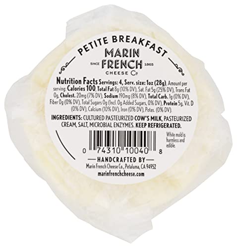 Marin French Breakfast Cheese is a California original - a fresh unripened Brie made in our Marin creamery since the late 1800's. For today's savvy cheese lover we added a dollop of cream to Breakfast Cheese, fluffed it to 4 ounces and renamed it Petite Breakfast. It's a fresh expression of our sweet local milk and cream, captures the essence of cool coastal breezes rolling over our Petaluma creamery and satisfies a craving for creamy, tangy fresh cheese with morning toast or evening cocktails.