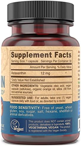 - TAILORED FOR VEGANS - Our Astaxanthin is 100% animal free, and guaranteed for purity, freshness and labeled potency. Made from Algae and NO ANIMAL INGREDIENTS.