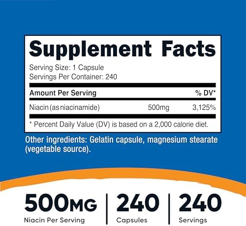Nutricost Niacinamida (Vitamina B3) 500mg, 240 Cápsulas - No OGM, Sin Gluten, Vitamina B3 Sin Enjuague