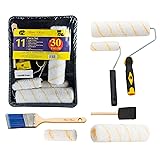 COMPREHENSIVE SET: Package includes 11 piece: Tray, Roller Frame (9"), 2 Roller Covers (9"x1/2"), Roller Frame (4"), 2 Roller Covers (4"x1/2"), 2" Angel Paint Brush, High Density Foam Brush PROFESSIONAL QUALITY: This paint tray set is high quality intended to be long lasting and easy to clean. Exceptional ability to get the job done quickly with a superior finish. THICK FILAMENTS AND NAP: The synthetic filaments in the paint brush are designed to hold more paint to save you time and give you the finish you are looking for. The Naps for the paint rollers are 1/2 inch thick, perfect for painting the house. Filaments and Naps are durable and long-lasting. AFFORDABLE: Don't waste your money on paint trays that will last you a hour. This high quality set is for perfectionist and money savers. The value you get in this Paint Tray set is unbelievable for the price. ANYONE CAN USE: It doesn't matter whether you are a professional or a beginner, the Paint roller, tray, naps, and brushes are great for any user.