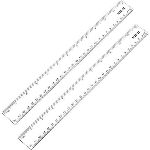 eBoot 12 inches plastic ruler straight ruler plastic measuring tool for student school office, clear, 2 pack 2 Pack student math rulers: The size of this ruler is 30.9 x 3.2 cm (L x W), 0.25 cm in thickness, not easy to break; Dust-proof and shatterproof, can last for a long time; 2 Pack student math rulers, measures range is 12 inches/ 30 cm. Centimeter scale and inch scale: Dual side measuring ruler, centimeter scale is on one edge of the plastic ruler and inch scale is on the other edge; Can meet your different measuring needs. A good measuring tool: The plastic straight ruler is made of good quality plastic, durable and sturdy; A good measuring tool, easy and convenient to use. Allow for a clear view: Translucent color allows for a clear view of numbers and letters on the page; With the clear mathematics ruler, you can measure an object easily. Wide usage: A useful learning tool as well as measuring tool for artists, designers, architects, engineers, students and so on; Suitable for classroom, school, office, home, etc. Specifications: Plastic ruler size: 30.9 x 3.2 cm (L x W) Thickness: 2.5 mm Quantity: 2 pack Color: clear Package includes: 2 x Plastic measuring rulers