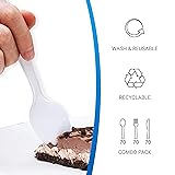 Assorted: 70 forks, 70 knives, and 70 spoons - everything you need in one box Safe Plastic: Made from durable, food safe, BPA-free plastic Lightweight: great for game day, barbeques, camping, birthdays, parties or simply every day use. Disposable: For a quick and easy clean up Recyclable