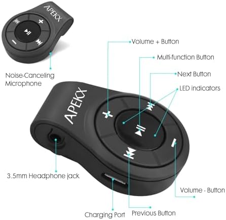 APEKX Clip Bluetooth Audio Adapter for Headphones, Headset, Speaker, Wireless Receiver with MIC for Hands-Released Call and Music