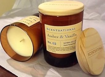 - Scentsational Amber & Vanilla Candle No. 02 Natural Soy Candle 11 oz. Glass container color may vary.