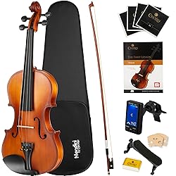 Excellent Craftsmanship & Sound: This violin is made of premium solid hand-carved spruce for the top, featuring evenly spaced grains for excellent tone and durability. The maple back provides lightweight strength and vibrant sound. This violin combines durability and comfort, perfect for long-term use Ergonomic & Smooth Playability: This 4/4 violin boasts an ergonomic design with smooth contours for comfortable play, helping beginners play longer with ease. Equipped with premium strings that deliver rich, resonant tones with clear projection, this violin combines superior sound with durability to inspire musical passion Perfect Gift For Everyone: This violin 4/4 full size is a great beginner violin for any levels. Whether for a friend, family member, or loved one, this is a perfect gift to make it easier for beginners to get started Beginner Violin Kit Includes: 4/4 violin, 1 violin bow, extra set of violin strings, 2 violin bridges, a rosin, adjustable shoulder rest (with padding and soft rubber feet), Tuner, Mendini violin lesson book, lightweight hard case (with pockets, backpack and shoulder straps). Everything you need for a beginner playing experience in this violins kit is included Ready to Play—Just Tune & Go: Your violin arrives almost ready—simply tune the pegs (gently push while adjusting) and play! Note: Bridge is unset for safe shipping. Start making music in minutes with this hassle-free setup