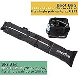100% Polyester Unpadded ski bag and boot bag combo. This ski travel bag can fit skis up to 200cm. The ski boots bag can accommodate ski boots up to size 13. A perfect ski and boot bag combo set for both mens and womens skiing gear. The ski travel bags for flying feature innovative roll top technology, allowing you to adjust the length of the large cross country ski bag from approximately 170cm (rolled) up to 200cm (unrolled). This long ski sleeve can hold a single pair of nordic or downhill skis and poles. The ski boot and helmet bag can fit most boots up to size US 13, while allowing additional room for a helmet, jacket, or goggles. The ski boot bags for adults include an adjustable, padded shoulder strap, side mesh tote pockets for storage of additional gear Includes adjustable shoulder carry strap with shoulder pad, side mesh pocket and reinforced handles. Each ski and boot bag combo is constructed of a strong & rugged 600D Polyester material, allowing the ski bags for adults to last trip after trip. The external compression straps allow you to lock your ski equipment down so it doesn't slide around in your ski case for air travel. Both the ski and boot bag are backed by the Athletico satisfaction guarantee. All of our ski bags and boot bags come with a one year manufacturer's warranty. And if you are not happy with your purchase for any reason, please contact us, so we can make it right.