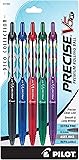 - Discover the perfect harmony of comfort, precision, and smoothness with Pilot Precise V5 RT Rolling Ball Pens. Whether you are signing important documents, jotting down notes or expressing creativity through artistic endeavors, Precise pens ensure your ideas flow with incredible control and finesse. Featuring Pilot’s Precise Point Technology, these pens deliver clean and accurate lines with every stroke, making them a great journaling accessory. Create masterpieces of writing or art with these easy-gliding liquid ink pens that offer an ultra-smooth, skip-free writing experience. The 0.5 mm pen point size delivers a finer and more precise writing style. It enables you to create intricate details, write in smaller spaces, and achieve higher accuracy. Reduce waste and reuse these pens as often as you like by refilling them with Pilot V5 RT Refills (sold separately). Archival-safe and acid-free black and blue pens are formulated to be long-lasting and fade-resistant, ensuring your documents last for a long time. These sophisticated pens feature a convenient retractable design with a metal clip, so you can carry them easily. Elevate your writing with Precise - America’s favorite rolling ball pen brand, available in several vibrant colors.