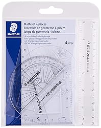 - Make learning geometry a breeze with this essential classroom 4 piece math set (569 WP4 02) from STAEDTLER. Designed for students from elementary through college, this portable geometry kit includes everything needed for precise measurements: a clear 6-inch ruler, two triangle set squares, and a 180-degree protractor. The transparent tools feature both metric and imperial scales, making it easy to see your work clearly. Whether you're sketching geometric shapes, working on drafting projects, or solving math problems, this compact geometry ruler set gives you the accuracy you need to succeed.