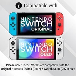 - BLACK TWIN PACK:This Pack Contains 2x Black Wheel attachments for Nintendo Switch JoyCons.* (each wheel is compatible with either joycon).PERFECT FOR MARIOKART:Orzly Steering Wheels allow you to have a truer driving experience when playing on your favourite Nintendo Switch racing games.FULL BUTTON ACCESS:All our wheel attachments include a shoulder button mechanism which allows full functionality of the SL and SR buttons at the top of the JoyCons whilst inside the wheels.LED LIGHTS:Enhanced design now also includes the functionality of the joycon's own LED lights, so that you can see which player is connected, even whilst inside the wheels. (The lights on the wheels are displayed by a special reflective mechanism, so that no power is consumed by your joycons, and no extra batteries are required. It will show a true real-time display of what your joycons LED lights naturally show, and your joycons will behave as normal without guzzling their battery!) EASY TO INSTALL:Simply slide your joy-con* into the central panel of the steering wheel attachment, to become a fully compatible racing wheel for all steering wheel compatible games on the Nintendo Switch.EASY TO REMOVE:Enhanced design now includes an easy access hole at the back of the wheel, so that you can pop the joycons out easily whenever you need to, without having to struggle, and without having to sacrifice how securely the joycons stay inside the wheels when in use.MORE ACCESSORIES AVAILABLE:Designed specifically for the Nintendo Switch. For our full range of Nintendo Switch accessories, search 'ORZLY SWITCH' in the Amazon search bar (above).*PLEASE NOTE: THE JOYCON CONTROLLERS SHOWN IN IMAGES ARE FOR USAGE DEMONSTRATION PURPOSES ONLY, AND ARE NOT INCLUDED WITH THIS PACK.