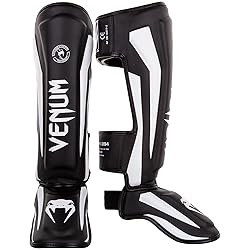 - Our Venum Elite shin guards are skillfully handmade in Thailand to provide our elite fighters with the best fighting equipment. Made with 100% Skintex leather, our elite standup shin guards’ combines comfort and great durability at an affordable price. Providing pro-anatomical reinforcement on the important key areas – shinbone and instep – delivers ultimate protection and optimal striking surface. The 2 large Velcro straps and the elastic bands placed under the foot and heel ensure you a secure custom fit.