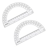 Measuring range: protractor measures 0 to 180 degrees left to right and right to left; Protractor with inch and centimeter marks makes measuring easy 2 Pack protractors: practical quantity, you can leave one at home and put the other at school or office; Appropriate size to use for geometry drawing and math class Size and material: the size of the plastic protractor is 6 inch, color is clear; With hollow center, the student protractor is easy to grip Use easily: you can use the geometry protractors to get the angle and length quickly; Easy to carry in bag, pencil case, math tool case, backpack, etc. Wide application: the ruler protractors are suitable for painting, measure, homework, technical drawing; You can send them to your friends and classmates