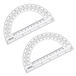 - eBoot plastic protractor 180 degrees, 6 inches, clear, pack of 2 Versatile protractor with accurate marking 6 Inches protractor inch marks is up to 6 inch, centimeter marks is up to 10 cm. 6 Inches protractor measures 0 to 180 degrees left to right and right to left. Protractor with inch and centimeter marks makes measuring easy. 2 Pack protractors Practical quantity, you can leave one at home and put the other at school or office; Appropriate size to use for geometry drawing and math class. Good helper for measure The clear protractors are suitable for painting, measure, homework, technical drawing; You can send them to your friends and classmates. Use easily: You can use them to get the angle and length quickly; Easy to carry in bag, pencil case, math tool case, backpack, etc. Specification: Protractor size: 15 x 8.5 x 0.11 cm Quantity: 2 pack Attention: the minimum accuracy is 1 degree. Package includes: 2 x Protractors