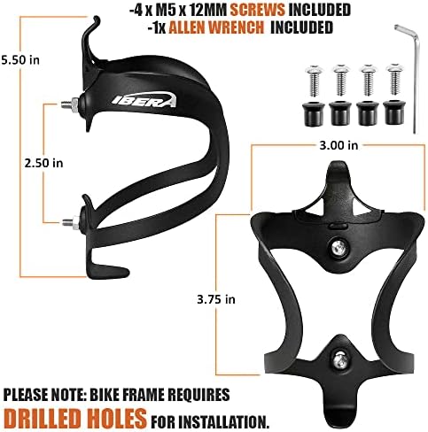 - MONTAJE SIN ESFORZO: Viene con 4 tornillos M5 x 12. Requiere orificios de marco roscados y una llave hexagonal de 4mm (no incluida). Este soporte de botella de bicicleta se instala rápido - monta y listo.