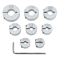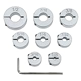 - Superior split ring design made from durable, lightweight aluminum for easier use. 5x holding power vs set screw design. Maintain precise and consistent hole depths and prevent over / under drilling mistakes. Quick and easy adjustment at any point on drill bit flutes / shafts. Fits twist and brad point drill bits for wood, metal, concrete / masonry. 8 piece set includes Allen Wrench and one stop collar each in the following sizes: 1/2", 7/16”, 3/8”, 5/16”, 1/4”, 7/32”, 3/16”, 1/8”