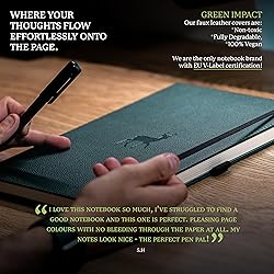A4 NOTEBOOK WITH LOTS O' FEATURES: Dingbats notebooks ooze quality - this hardcover bound leather notebook is crafted with PU vegan leather, micro-perforated cream 100gsm pages, an elastic closure and pen holder. It's complete with animal footprint end sheets, and an inner pocket for a little added detail - the perfect gifts for men and women, these travel essentials are a gift that keep on giving HIGHEST-QUALITY WRITING PAPER: This A4 notebook journal (extra large, 21.5 x 30 cm) in a flat lay design, is as aesthetic as it is practical. Our size A4 notebook has 192 pages (96 sheets), of the world's highest quality Cream 100gsm, acid-free fountain-friendly, perforated squared paper - make your Dingbats notebook your own, it's the perfect recipe, travel, business notepad, or a place to collect your inspirations and thoughts A MULTI-FACETED JOURNAL: Use this stylish notebook as a space to organise your days and thoughts. A cute notebook that can function as both a secret diary and a to do list pad, keeping your days on track and your mind in check. No matter what kind of day or week it is, you'll find something to fill the squared pages of this extra large notebook with! This super-sized Dingbats writing pad is an excellent companion for jotting down your thoughts, sketches and doodles THE ONLY VEGAN CERTIFIED NOTEBOOK: Made from recyclable materials and purely FSC certified paper, this handsome squared notebook is 100% Vegan Certified! We wear this badge with honour, and hope you join our pledge to make the environment a better place, one Dingbats pocket notebook at a time! For its UK sales, Dingbats* Notebooks Ltd donates 2% of its revenue to WWF-UK, a charity registered in England and Wales (1081247) A BRAND WITH HISTORY: This hardcover notebook has been handmade with love, by the oldest established paper company in Lebanon (since 1800). We passionately believe that there’s still a place for traditional materials in today’s high speed, digital world. Sometimes you need something that’s more tactile – more personal. The expansive range of Dingbats* Notebooks allows you to choose a design, material and colour that are reflective of your personality