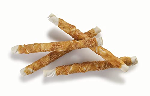 Pet 'n Shape Chik 'n Hide Twists are made from naturally delicious chicken breast wrapped delicately around a savory rawhide chew. Perfect for puppies, adults and senior dogs of all breeds. Chik 'n Hide Twists contain no artificial additives, preservatives, colors, or flavors and are free of any wheat, corn and soy. All Pet 'n Shape treats are U.S. lab tested for safety and carefully roasted to ensure optimal quality and flavor. Resealable packaging locks in freshness and is ideal for easy storage.