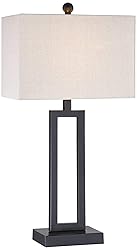 【Specifications】UL listed. 26" high overall. Base is 6 1/2" wide x 4 3/4" deep. Shade is 8" high x 13" deep across the top and bottom x 9" high. Weighs 4.4 lbs. Uses one maximum 100 watt standard-medium base bulb (not included). On-off socket switch. 【Bedroom Ambiance】 Elevate your night stand with this bedside lamp from Lamps Plus that combines style and functionality. Perfect for late-night reading, these bedroom lamps for the nightstand add a decorative touch to your bedside table. Its unique design and industrial aesthetic enhance your bed side decor, creating a cozy and modern atmosphere. 【Versatile Lighting】 Brighten your kitchen counter or entryway with a side lamp. This entry table lamp is perfect for adding a stylish touch to small spaces. Ideal as a table top lamp or bed lamps, its design seamlessly blends into any decor, making it a versatile and elegant choice. Contemporary table lamp from the 360 Lighting brand. Ideal for modern farmhouse and rustic room design as well. 【Pre-Assembled Shades】Black finish metal lamp body. Open rectangular lamp profile offers a sleek and airy design accent. Rectangular off-white fabric shade with ball resin finial. 8-foot long black cord. 【Living Room Sophistication】 Transform your end table or console with modern table lamps for the living room. Ideal as sofa table lamps or an entryway lamp, this single table lamp for the living room adds a beautiful accent to your dining room or buffet. Its narrow and elegant design provides both style and function, enhancing your home decor.