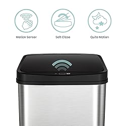 【Hassle Free Two-Year 】Hassle free process with our dedicated customer service line and at no additional charges for your defective parts 【High Quality Materials】Water-resistant infrared motion sensor prevents moisture or any accidental spills from damaging the unit. Plust finger-print resistant stainless steel base helps keep the can clean. 【Advanced Technology】 Delay sensing technology preserves battery life and prevents any unnecessary opening from pets, children, or walking by. Quiet closing function for longivity of product life. 【Touch-free Motion Sensor Lid Clouser】Seal odor in and eliminate cross-contamination of germs. Requires 2 D batteries (not included), Alkaline battery highly recommended for best performance. 【Ease and Convenient】Removable ring liner holds trash bag sturdy in place and prevents bag from overhanging for a neat and clean appearance. Use any standard trash bags or NINESTARS custom trash bags NSTB-13-30.