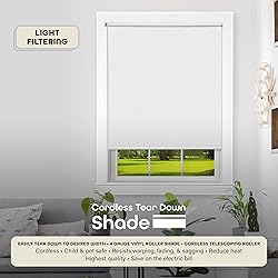 - Cordless Tear Down Room Darkening Shade: Reduce heat and help save on the electric bill with the Achim Cordless Tear Down Room Darkening Shade. These 8-gauge vinyl, roller tear down shades can be easily adjusted at home to fit just right, and are child and pet safe with no cords to get tangled.