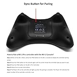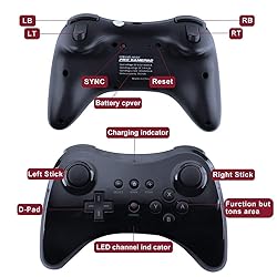 - Our game controller is compatible with Wii U game console as the replacement for Wii U pro controller. It adopts the highest quality and ergonomic design so you can enjoy hours of wireless gaming. Description: Your games, your way. However you think of your gaming style-hard-core, old school, or purely nostalgic - the Controller for Wii U Pro puts you in the game. Designed for accessibility and extended gameplay comfort, the Controller for Wii U Pro features the dual analogue sticks and ergonomic button layout that you've come to expect, as well as a rechargeable battery that can last up to dozens of hours on a single charge. Specifications: 1. Color: Black 2. Material: Plastic 3. Dimensions: 4.33 x 6.3 x 1.5 " / 11 x 16 x 3.8 cm (L x W x H) 4. Weight: 7.9 oz / 224 g 5. Connection: Wireless 6. Compatible with Wii U system or games. NOT COMPATIBLE WITH THE WII SYSTEM OR GAMES. 7. Work with several of hours on a single charge Packaging details: 1×Wii U Pro Controller 1× USB Cable 1× User Manual How to Pair a Wii U Pro controller with the Wii U Console? Step 1.While on the Wii U Menu, press the SYNC Button on the Wii U Console to display the controller pairing screen. Step 2.Press the SYNC button on the console again until the screen shows the controller type you want to pair. Step 3.Press the SYNC button on the Wii U Pro Controller. Step 4.Follow the on-screen instructions. Step 5.The Player LED on the controller will light up when the pairing is complete. The Player LED indicates the player number of the controller currently in use. Note: Up to six Wii Remotes and/or four Wii U Pro Controllers can work together with the Wii U using either the sensor strip on the Wii U GamePad or the sensor bar.