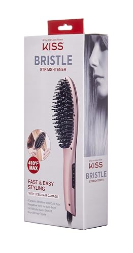 Experience fast and easy styling with the KISS Bristle Straightener Heat Brush. Designed for silky straight hair results, this hot brush works like a hot comb or hair straightener features cool-tip ionic bristles that protect your scalp from heat while reducing frizz, split ends, and knots. The digital temperature control heats up to 410°F, ensuring optimal styling for all hair types. The lightweight handle and 360° swivel cord provide maximum comfort and maneuverability. For added safety, it includes a 90-minute auto shutoff feature. Achieve lustrous, manageable hair effortlessly with this versatile styling tool.