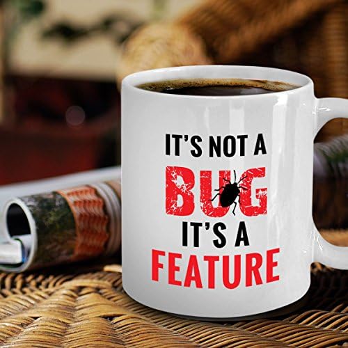- PROGRAMMER MUG - This coffee mug says It's Not A Bug It's A Feature