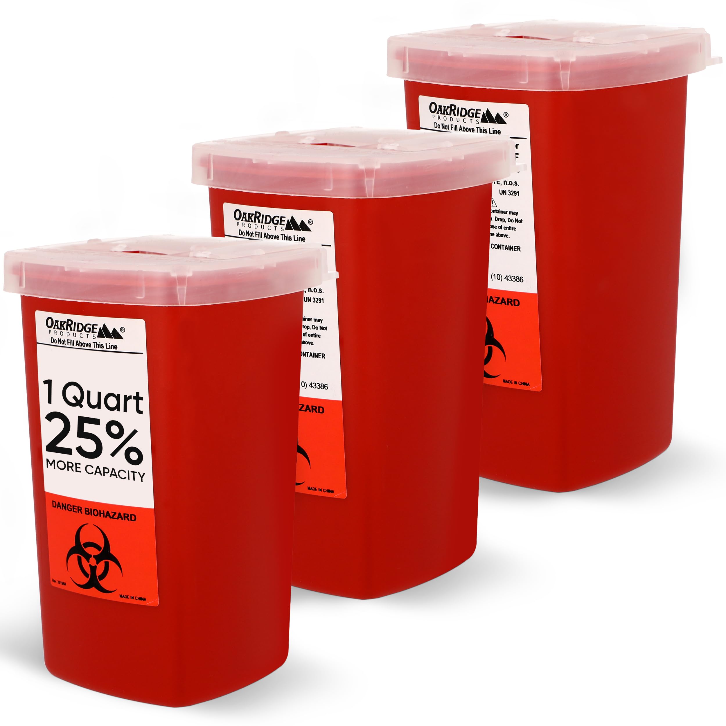 Oakridge Products Sharps Container for Home Use and Professional 1 Quart (3-Pack), Biohazard Needle and Syringe Disposal, Flip-up Lid with Integrated Needle Inwinder, CDC Certified