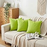 Thmyo 4-Pack 100% Cotton Comfortable Solid Decorative Throw Pillow Case, Square Cushion Cover Pillowcase Sublimation Blank Pillow Covers DIY Throw Pillowcase for Sofa(18x18inch/45x45cm,Light Green)