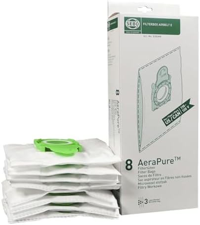 - SEBO Filter Bag Box Airbelt E, 8 Three-Layer Ultra Bags with caps #8300AM