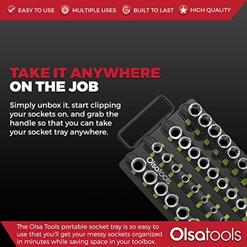 - EASY PORTABILITY & CONVENIENCE - The Olsa Tools portable socket tray is so easy to use that you'll get your messy sockets organized in minutes while saving space in your toolbox. Simply unbox it, start clipping your sockets on, and grab the handle so that you can take your socket tray anywhere.